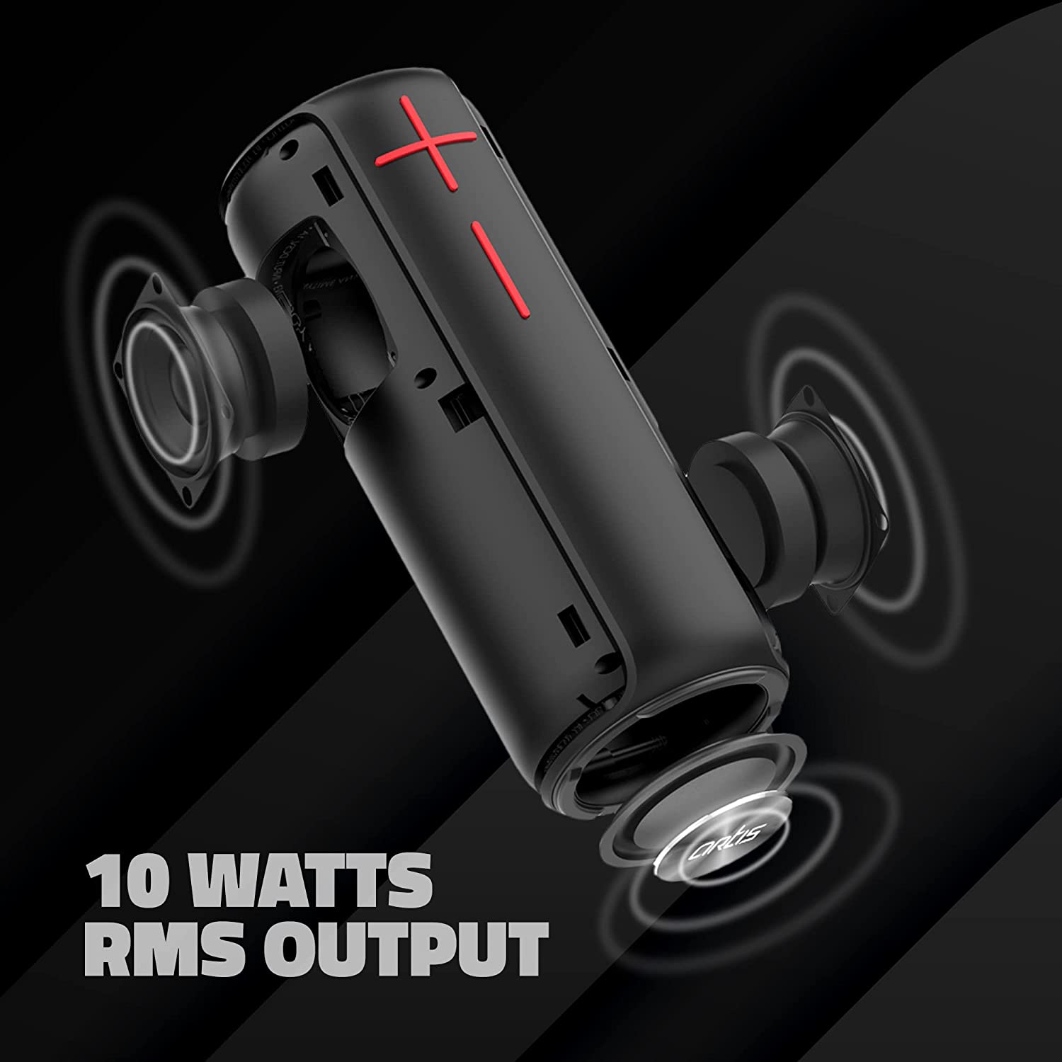 - It delivers a powerful 10W stereo output ,Bluetooth Range: 10M, Driver Size: 52mm x 2 & Speaker Input: 5V 1A