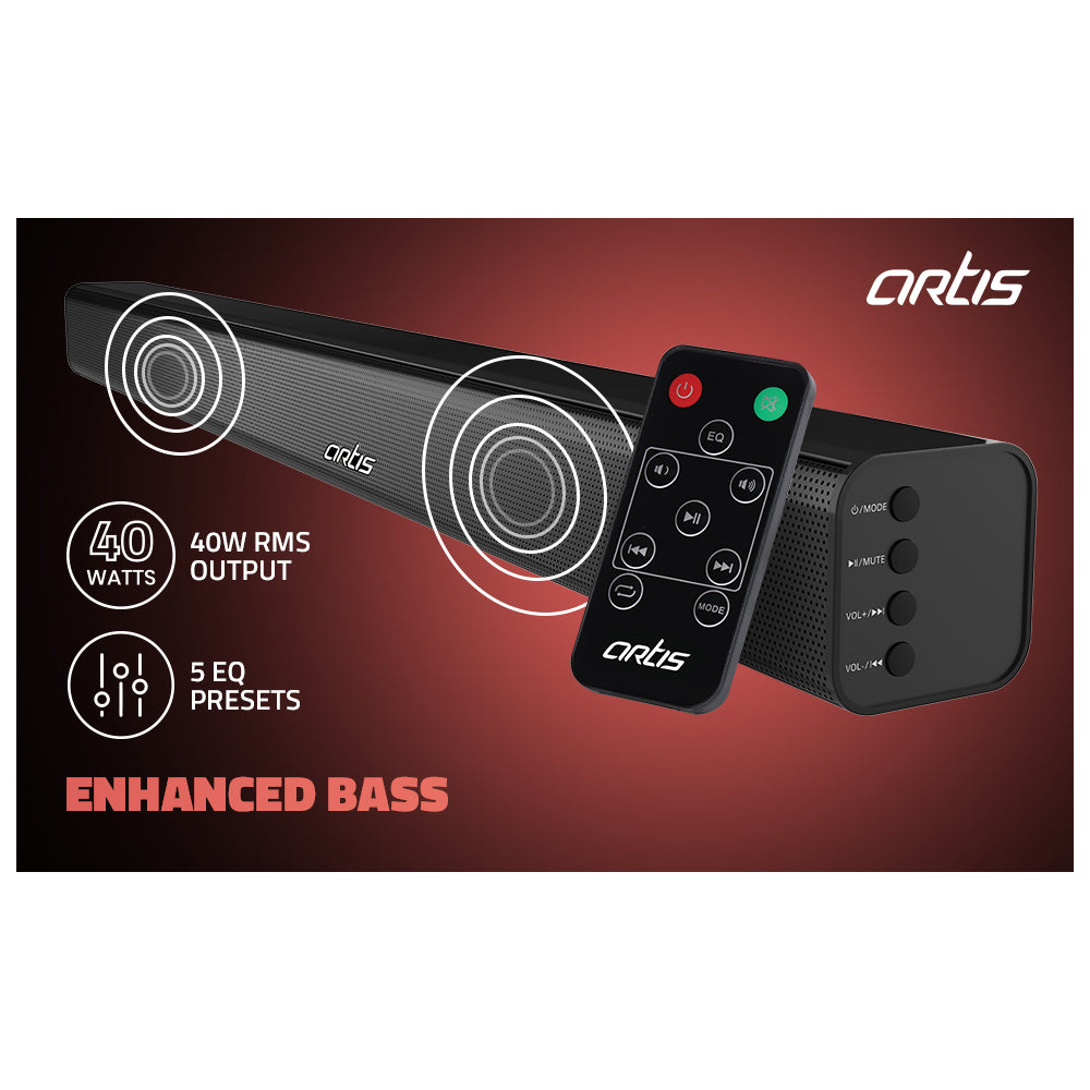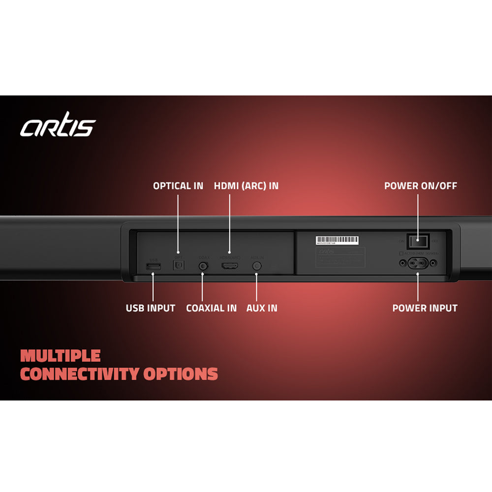 - The Artis X5 SoundBar raises the bar by giving you immersive & cinematic sound in an ideal room-friendly size. The 4 Driver units along the length of the bar, 2 passive radiators, and inbuilt amplifier help truly provide a 2.0 Channel 3D surround sound experience!