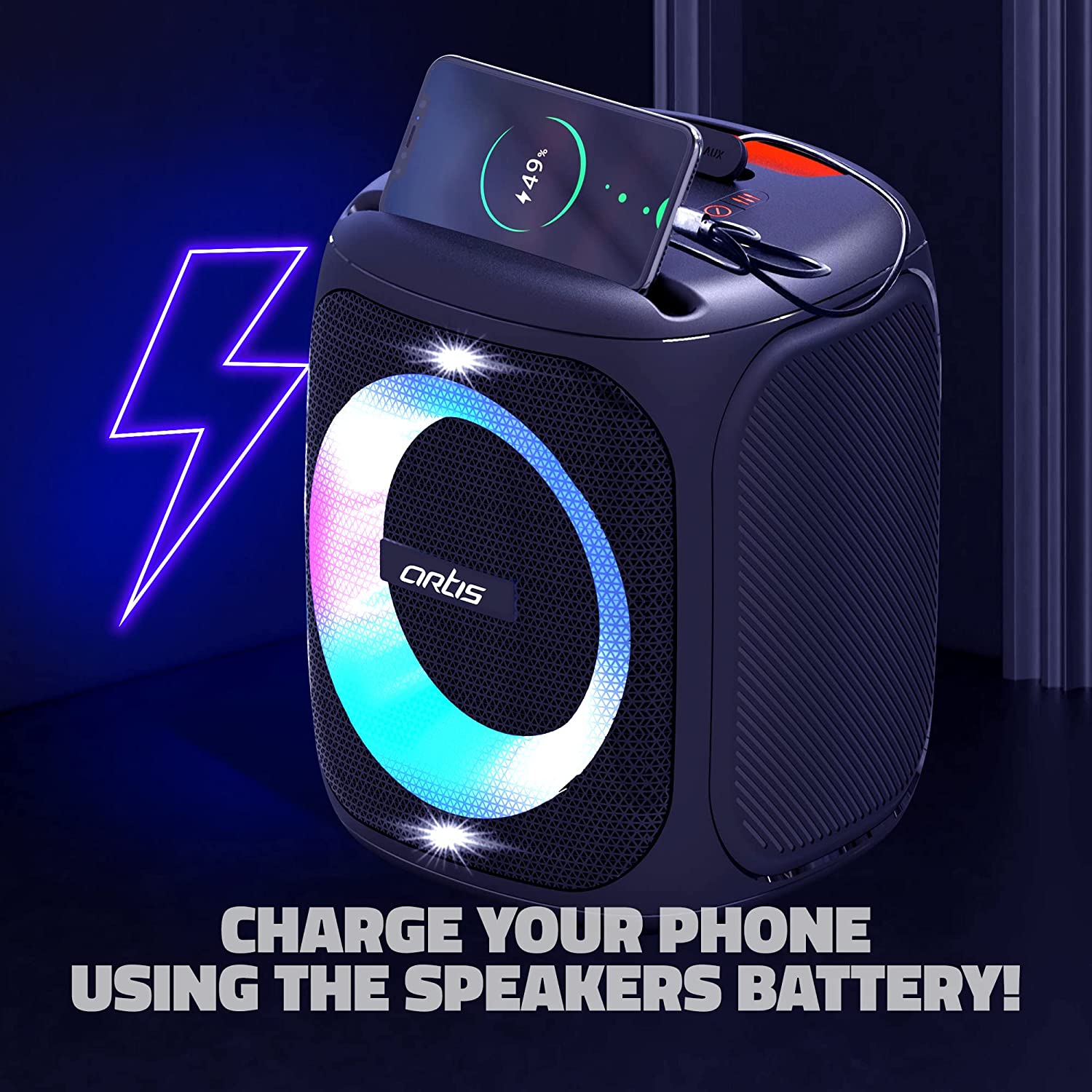 - Device Charging USB Type A Port : Charge your phone using the Speaker Battery