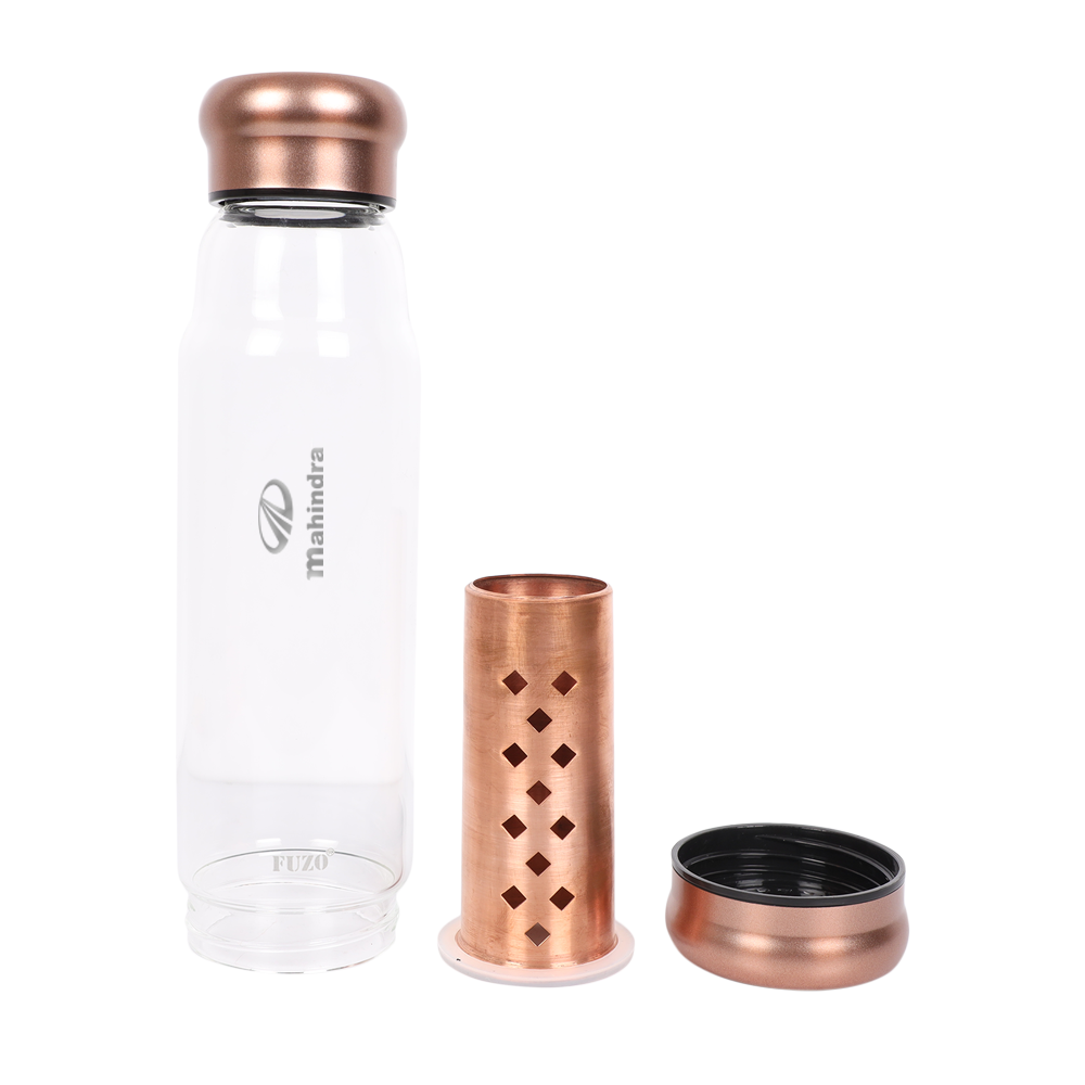 Discover the health benefits of copper-charged water in a stylish glass bottle, a thoughtful and beneficial corporate merchandise option.